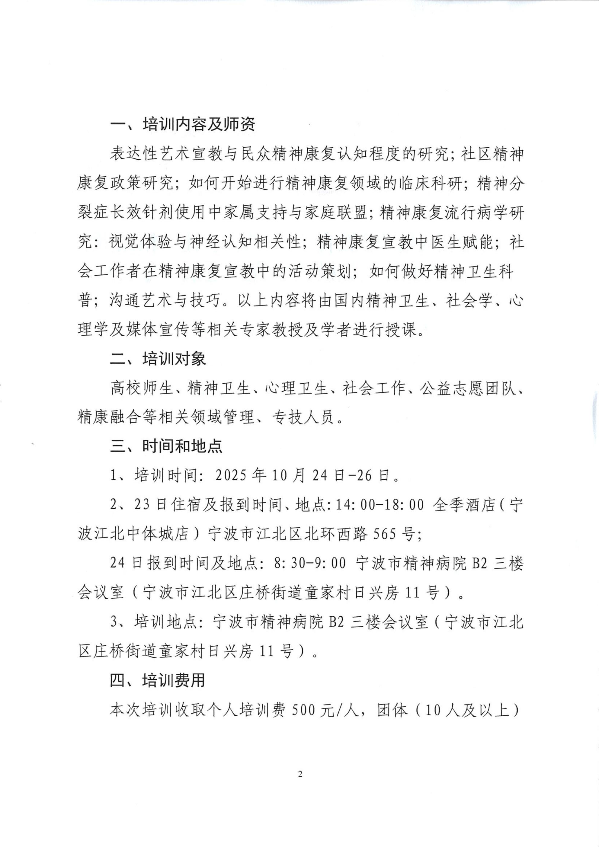 国家级继续医学教育项目“基于社区精康融合的精神康复宣教模式研究新进展”学习班报名通知